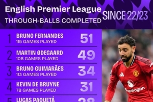 谁最能“塞”?英超22/23赛季以来直塞榜:B费51次第1,厄德高第2