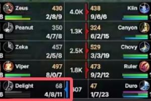 体育资讯10月28日讯 S15八强HLE零比二GEN,本局比赛HLE辅助Delight使用波比完全被打出辅助差距,连续冒进送头掉点,最终打出4-8-11的战绩。