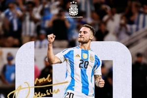 此役是麦卡利斯特为阿根廷队出战的第40场比赛,阿根廷队官方社媒晒出海报,对他表示祝贺。